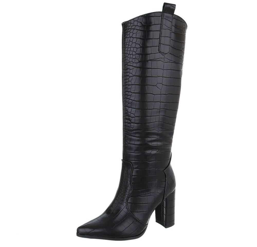 Ital-Design Damen Elegant High-Heel-Stiefel (91154729) Blockabsatz Stiefel in Schwarz: Eleganz trifft Komfort für die moderne Frau